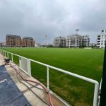Sur le chantier du futur Centre d’Innovation des Rugbys à Pantin, la pelouse hybride du terrain d’honneur a été semée ce printemps.